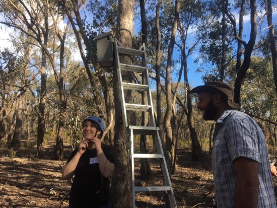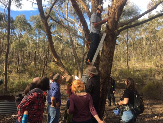 Connecting Country’s Nestboxes for Wildlife workshop on Sunday 6 May 2018 was blessed with fine weather, a great presenter, and sightings of a little sugar glider family via our special nestbox camera. The workshop was held at a local Trust for Nature property owned by Jan Hall, a long-time Connecting Country friend and supporter. Jan kindly opened her home so we could view a presentation inside, and enjoy an al fresco lunch under the grapevines.